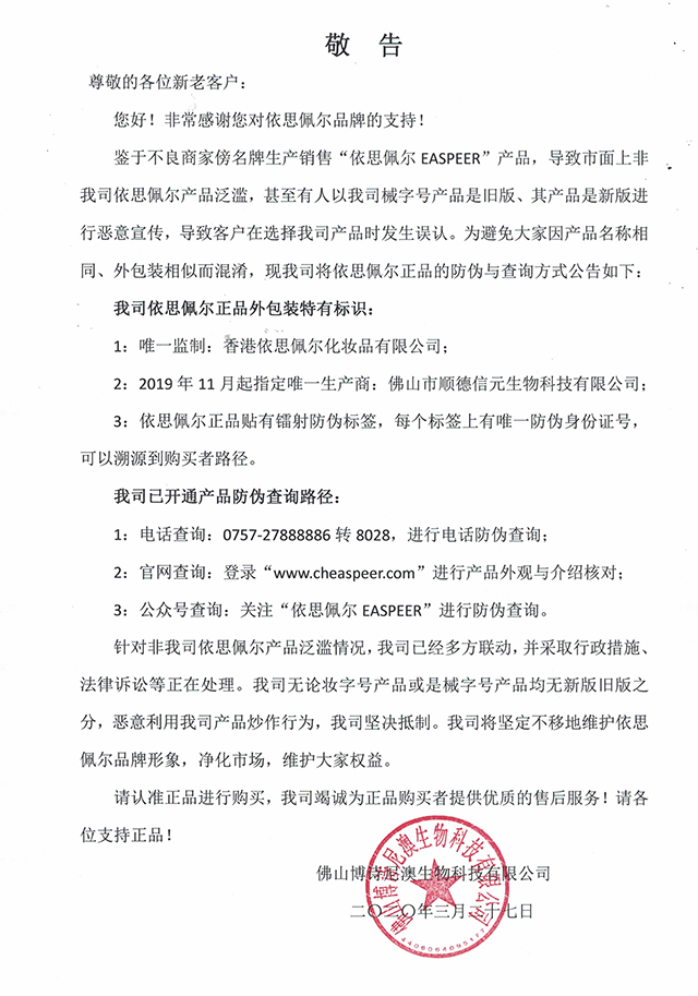重要 | 关于依思佩尔产品防伪的敬告