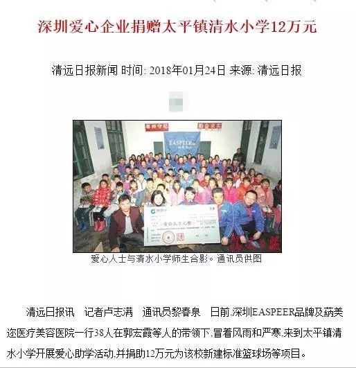 日前,由EASPEER总部成员、代理商代表和专家团队组成的爱心团,到达广东清远市阳山县的清水小学,将准备的爱心礼物和捐赠物资顺利送到师生手中。此举受到了社会各界的广泛关注和赞扬,清远日报就此事进行了报道。